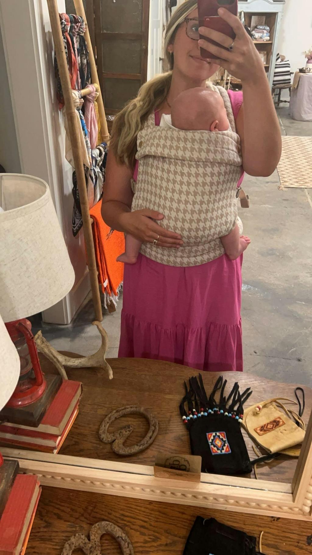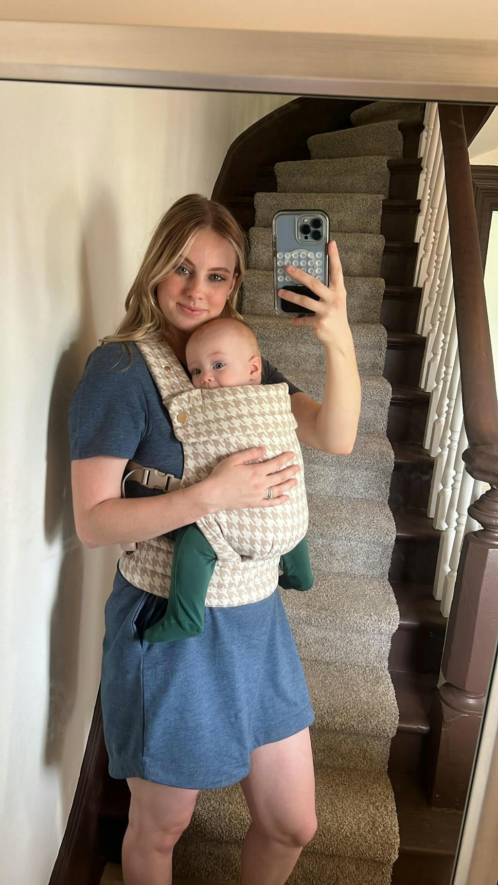 Ich hätte nie gedacht, dass eine Babytrage so elegant sein kann. Sie ist wirklich Teil meines Looks und meiner Routine geworden. Mein Baby sitzt darin mit einer unglaublichen Leichtigkeit!