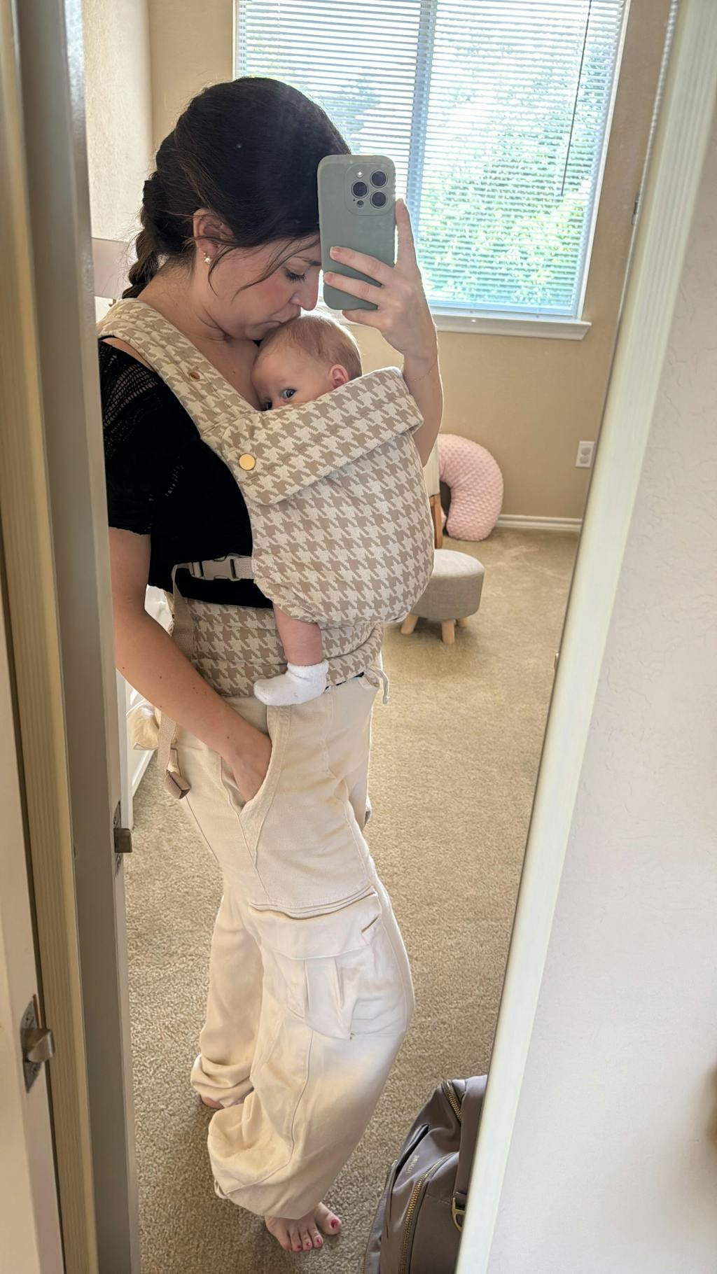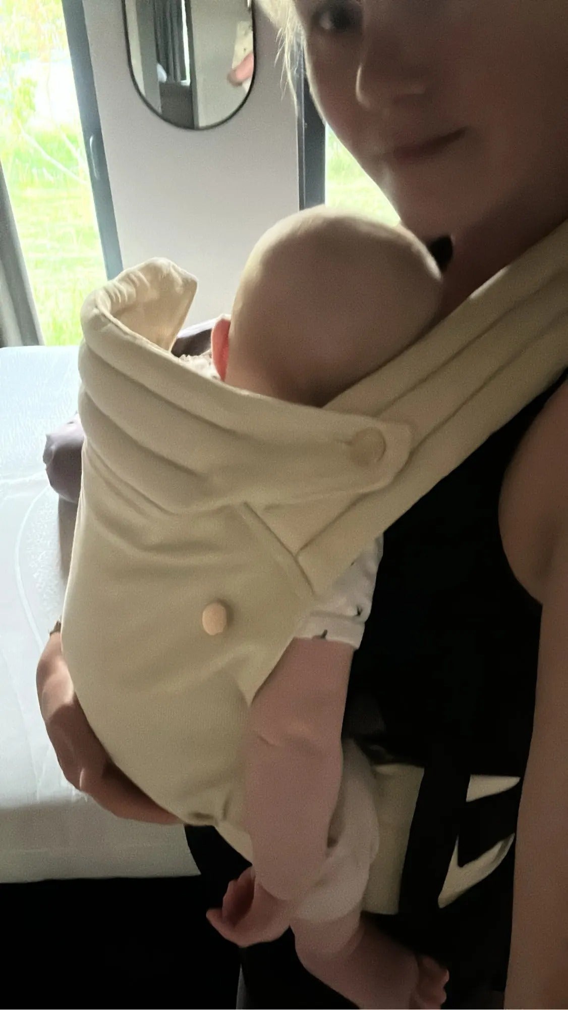 Ich hätte nie gedacht, dass eine Babytrage so elegant sein kann. Sie ist wirklich Teil meines Looks und meiner Routine geworden. Mein Baby sitzt darin mit einer unglaublichen Leichtigkeit!